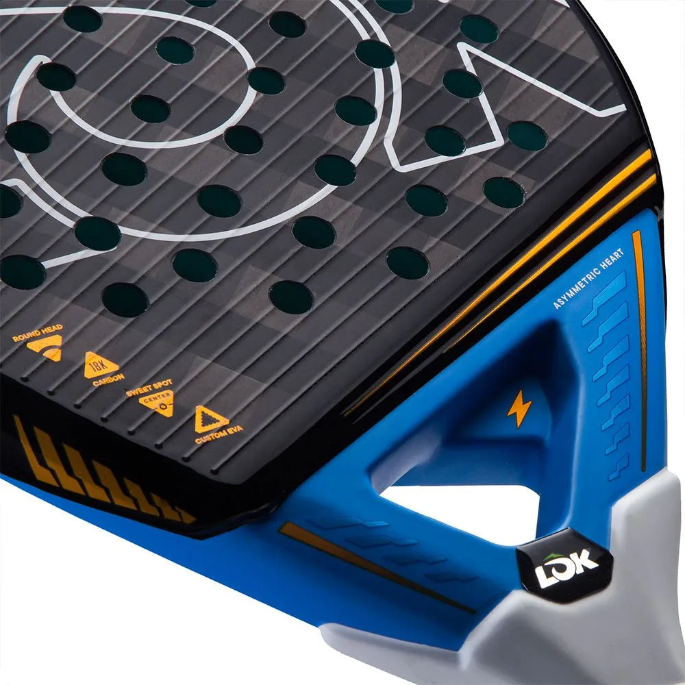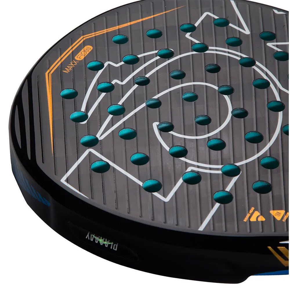 La pala de Bea Caldera, la Maxx Flow, es una pala innovadora diseñada para brindar un rendimiento excepcional en la pista. Una de las características principales de la Maxx Flow es el corazón asimétrico, una estructura de carbono, que proporciona una excelente rigidez y estabilidad. Esto permite una transferencia óptima de energía en cada golpe, maximizando la potencia sin sacrificar el control. Además, la pala cuenta con una capa de carbono C18, que ofrece una mayor durabilidad y una respuesta más consistente en cada golpe. Además, el sistema 3D Spin Lines incrementa la rotación de la bola, aumentando así el efecto y mejorando la sensación de control.